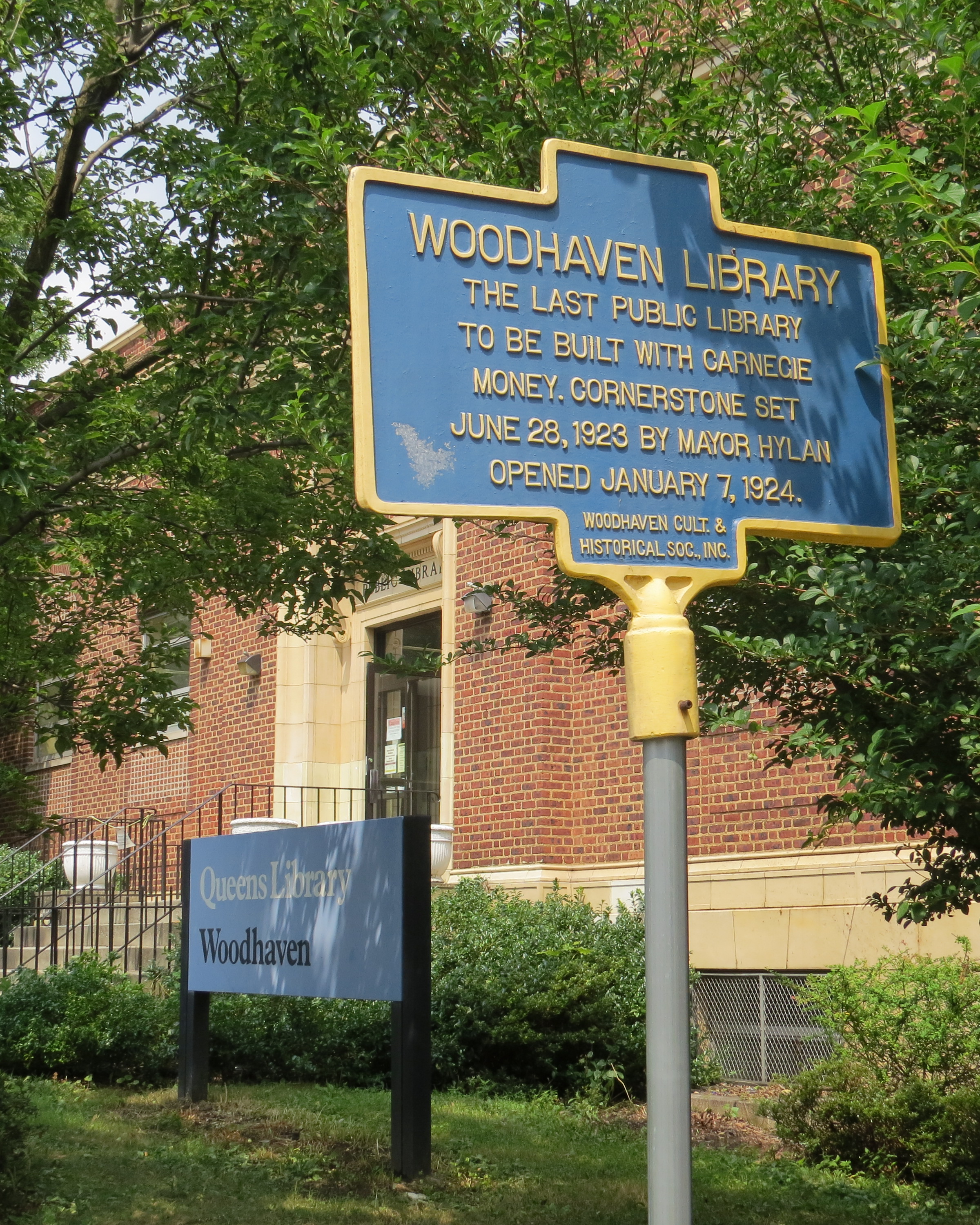 The historic Woodhaven library opened in 1924 and was the last one in Queens to be funded by Carnegie, a Scottish-American businessman and philanthropist. A total of 2,509 Carnegie libraries were built between 1883 and 1929 – including 1,689 in the U.S. and others in Britain, Ireland, Canada, Australia, New Zealand, Serbia, and the Caribbean.