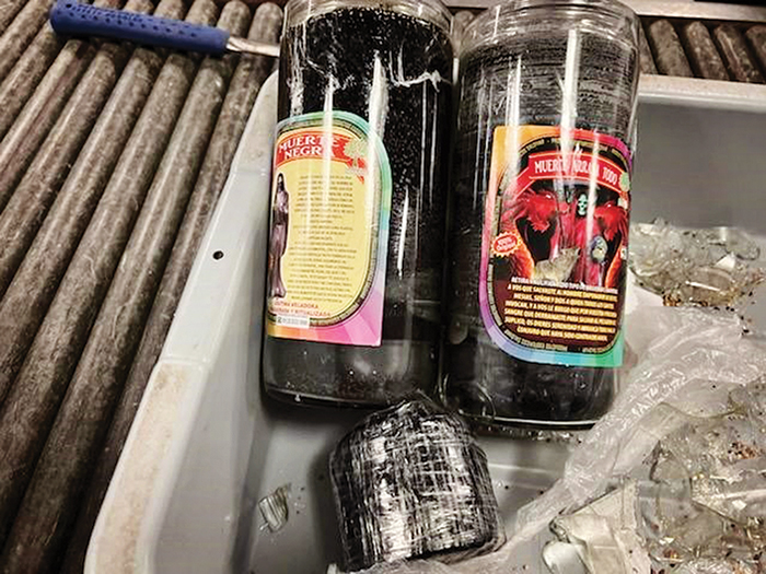 The CBP Agriculture Specialists requested assistance from CBP Officers, who inserted a probe into one candle. When the probe was removed, a white powder was discovered, which subsequently tested positive for fentanyl.