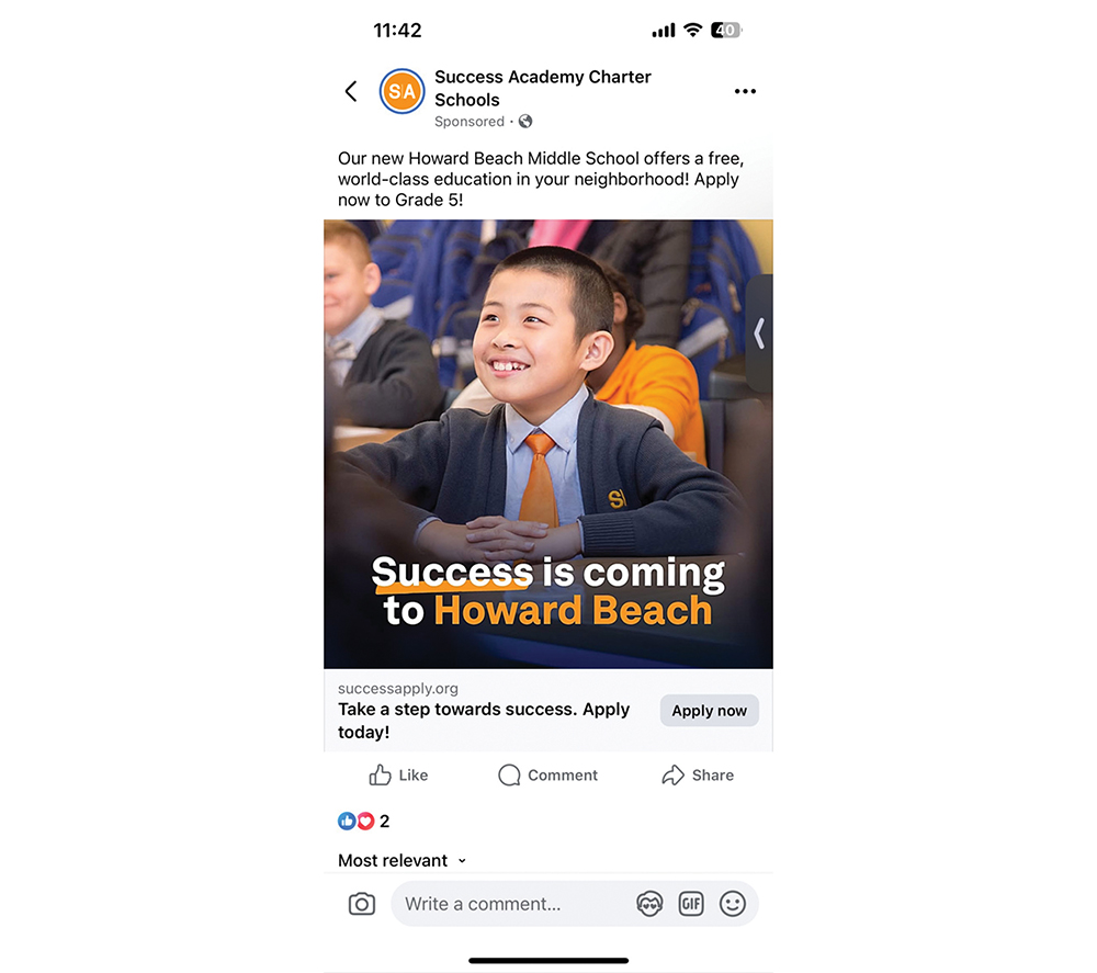 Pending government approval, Success Academy Charter Schools’ Howard Beach Middle School (grades 5-8) is set to open its doors later this year on the site of the Our Lady of Grace Catholic Academy building at 158-20 101st Street.